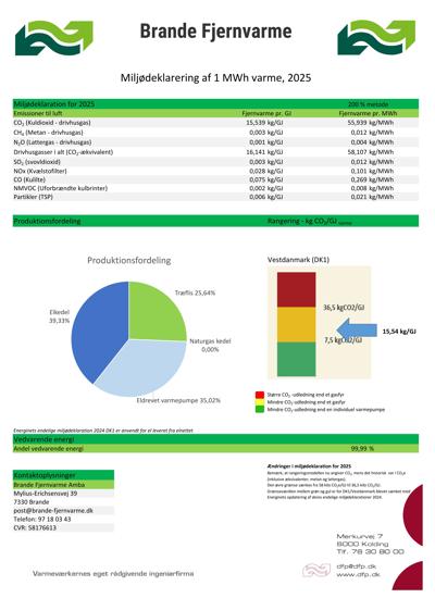 Miljødeklarationen viser fordelingen af energiformer anvendt til fremstillingen af fjernvarme i 2025.